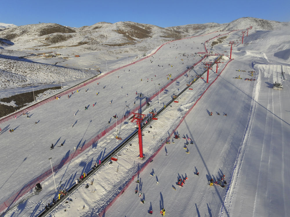 ↑12月1日拍摄的新疆阿勒泰将军山国际滑雪度假区。新华社发(明庭俊杰摄)