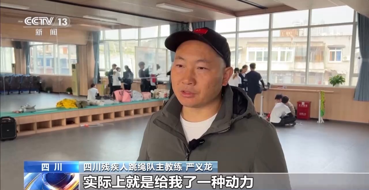 四川残疾人跳绳队主教练 严义龙:今天我看到他一分钟跳了180个,下周能看跳200个,一年他以后能跳到220个,每一次他们的进步,实际上就是给我了一种动力。
