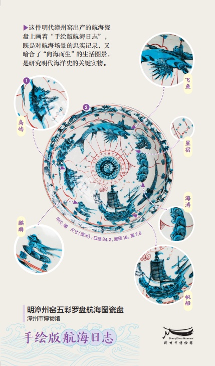 △明漳州窑五彩罗盘航海图瓷盘 漳州市博物馆藏