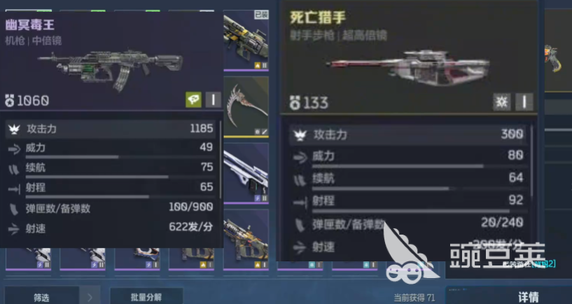 说到幽冥毒王跟死亡猎手,他们其实各自都具备优势,比如幽冥毒王的续航能力比较强。而死亡猎手的威力跟射程比较高。不过对于大部分玩家来说,他们在选择具体枪械的时候,往往也需要搭配最合适的枪械。另外,在推荐武器方面的话,也有部分玩家会直接选择暗影之伤。这个虽然说只是一个手枪,它的射程也不是特别的远,但是很多玩家也比较清楚,他的枪械威力是比较厉害的,并且还能在技能设定方面有所体现,所以说玩家选择这个枪械的时候,额外就能够附加属性攻击。