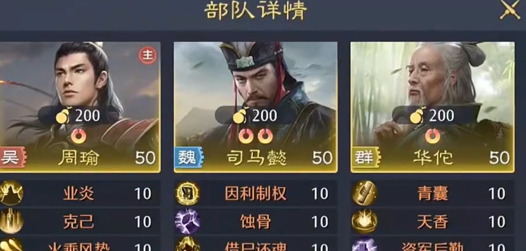 司马懿在这一套阵型中主要的输出者。司马懿的主要输出来源于中毒效果,它不仅可以不断削弱敌人的生命值,而且可以利用技能来提升自己的智力,从而加大中毒的效果。结合其他输出技能,司马懿可以利用敌军长时间战斗的时间来累积大量的伤害,保证队伍在持久战中处于有利地位。在技能选择方面,建议把投戟卫君换成鼓角齐鸣来提高队伍的回怒能力。司马懿可以带克己或者矜持的技能,不但能提高输出,而且在需要的时候可以增加自保的能力,减少敌人的威胁。