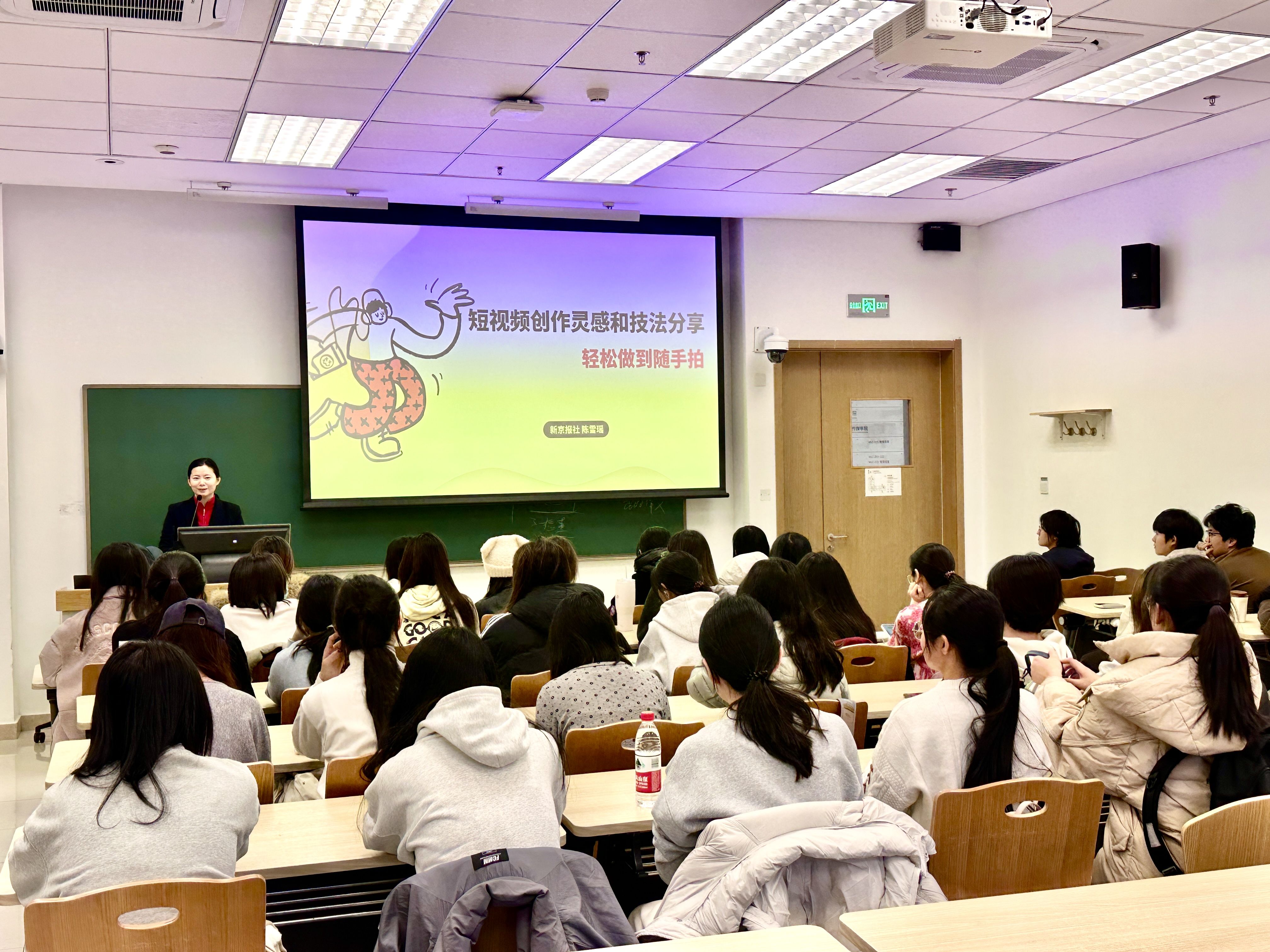 讲座结束后,一名同学就专业课小组视频作业如何进行分工的问题展开提问,陈雪瑶指出,平衡分工是确保视频顺利推进、作业高效高质完成的关键。要明确成员的专长,根据专长分配任务,既能发挥个人优势,又能提高整体效率。同时,要在细化任务清单的基础上,实行导演(编导)责任制,由导演作为团队的灵魂,贯穿视频选题、脚本撰写、素材整理、剪辑成片的始终,对视频的质量进行把关。