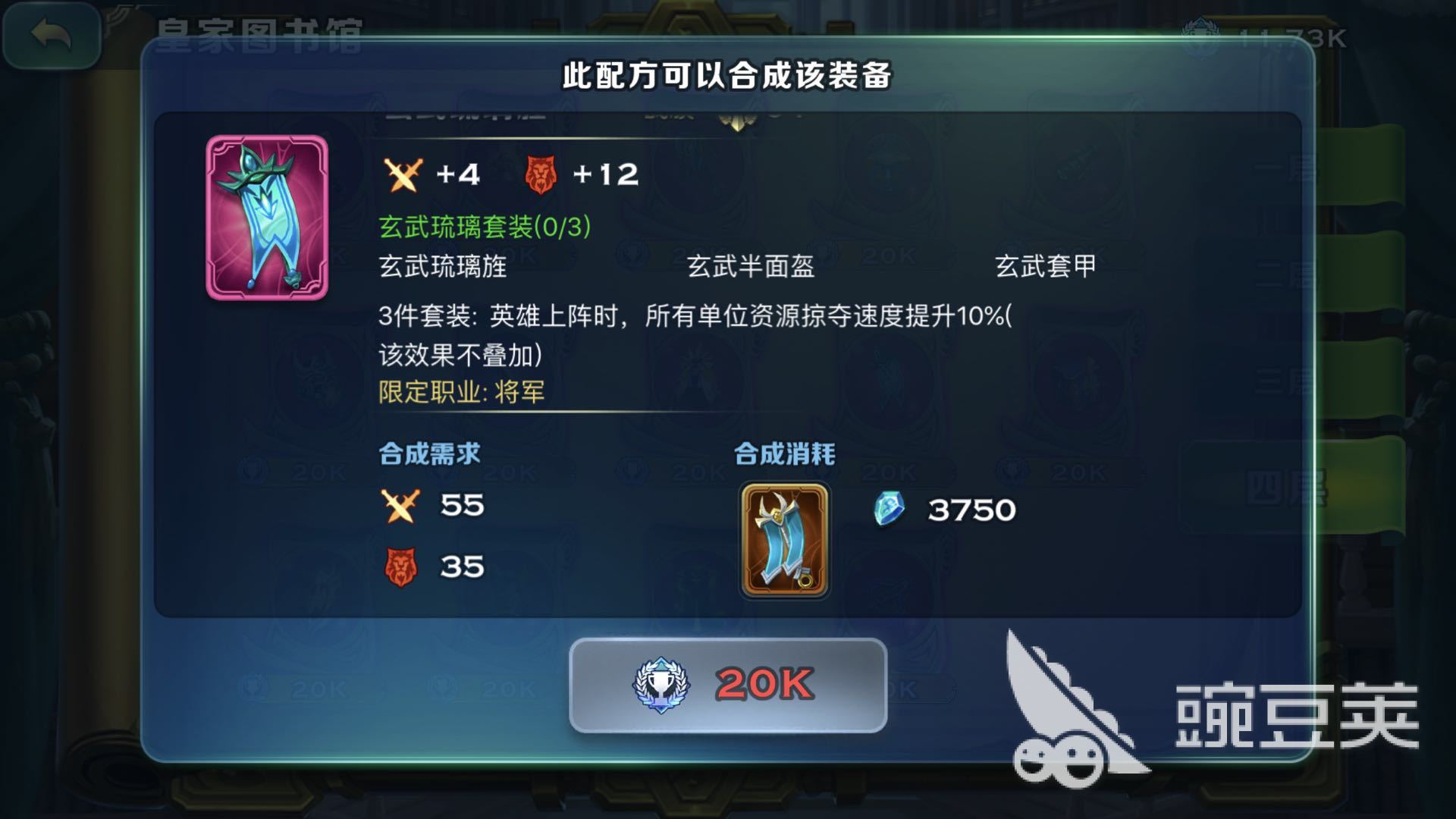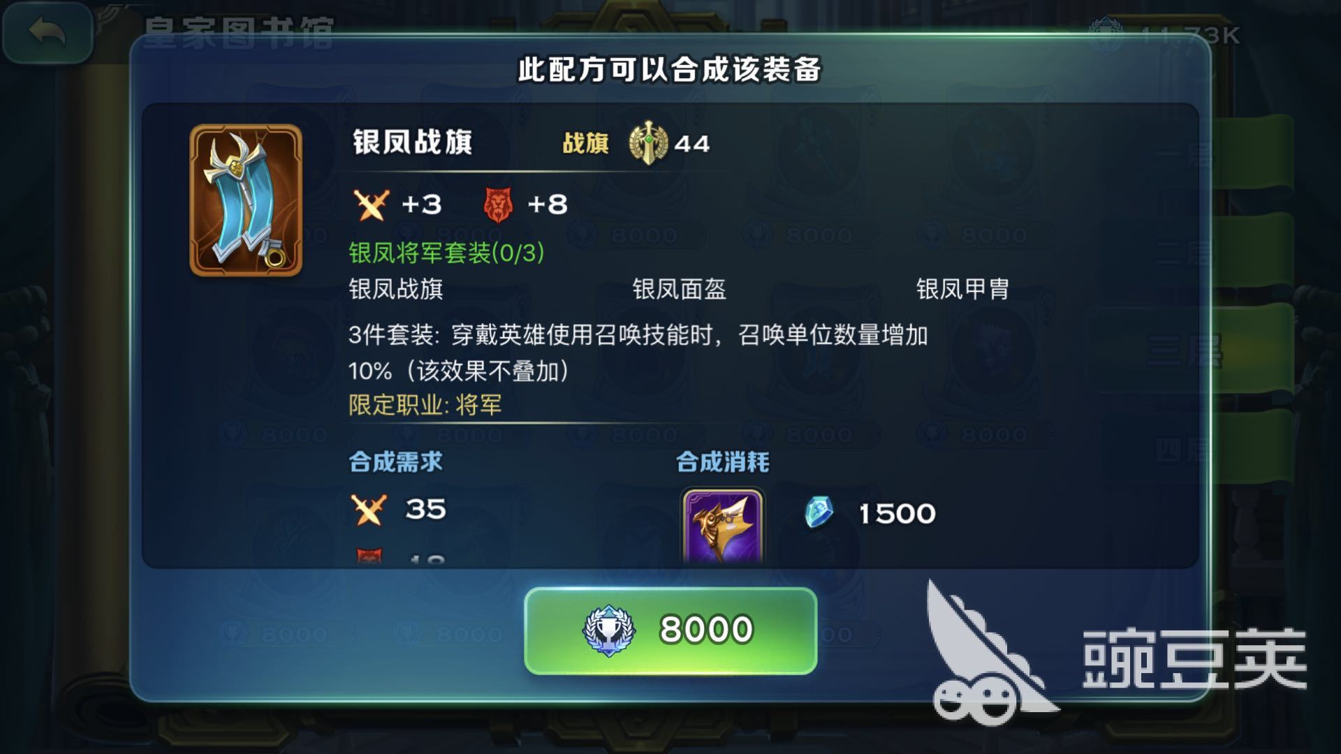 3.其实图书馆里的装备是一步一步升级来的,比如酋长旗升级之后获得三角龙旗,三角龙旗再升级获得银凤战旗,银凤战旗升级获得玄武琉璃旗,这些装备的制作图纸都可以在图书馆中获得。