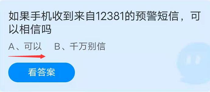 解析:12381就是系统发放的防诈骗短信,可以相信。答案