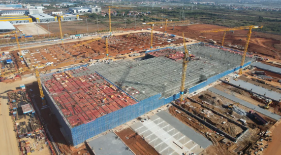 “挂图作战”的进度表上,每个节点都标注着明确的完成时限。“目前建筑安装施工总承包已完成主楼全部桩基工程、基础结构以及部分一层主体结构工程,同步实施四周道路及管网工程,按目前推进速度,年底前完成全部主体结构封顶,计划2026年10月底即可竣工投产运行。”施工总承包单位技术部总工谢小龙指着正在绑扎钢筋的作业面说,现场每天有300余名工人、50余台机械设备同步施工,“我们正全力以赴,确保如期完成建设目标。”