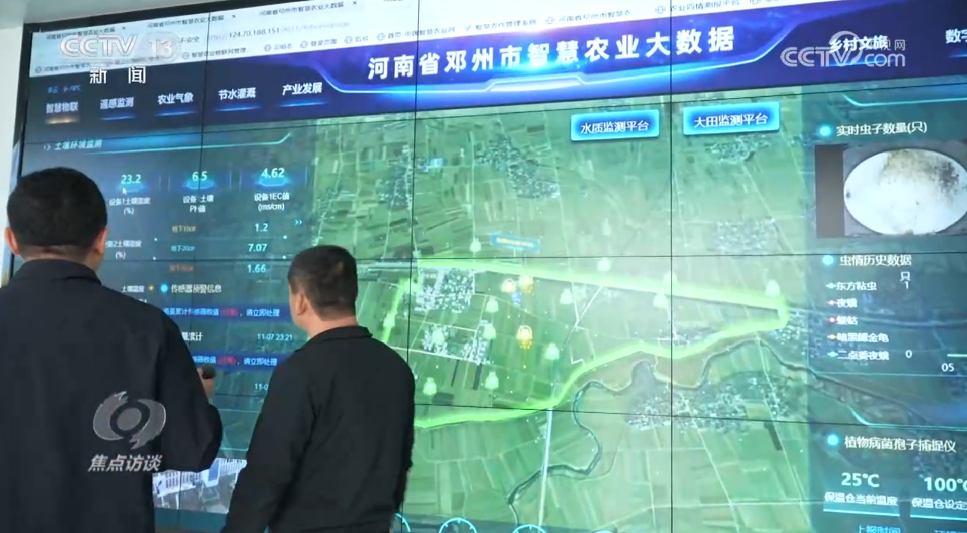 在邓州的智慧农业中心,记者看到,智慧平台正实时监控田地的湿度、温度等情况。