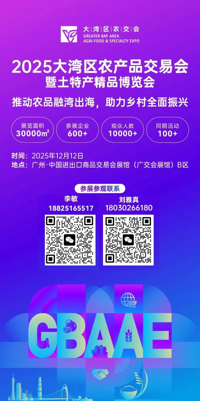 聚焦湾区,向未来出发!2025大湾区农产品交易会暨土特产精品博览会将于2025年12月12日至14日隆重举行,本届展会必将成为汇聚全国精品、引领产业趋势、促进贸易合作的顶级农业盛会,为乡村振兴注入澎湃动力。敬请期待!