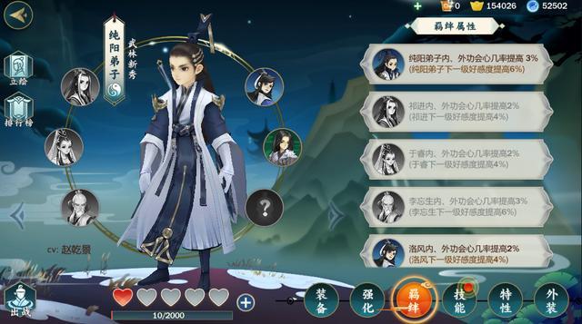 羁绊方面,纯阳门生的羁绊属性能够增添人物的会意和会效,颇有用的1个属性,羁绊属性培育起来对跟纯阳门生有羁绊关联的人物来说同样是提个出奇大的提高,假如后期想玩于睿和李忘生的,提议刷纯阳门生新鲜感。