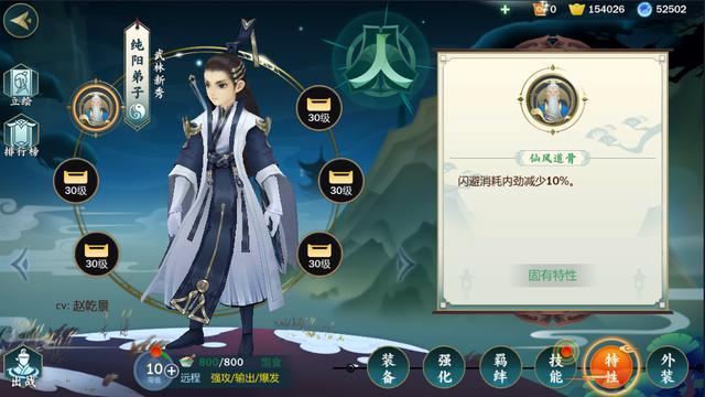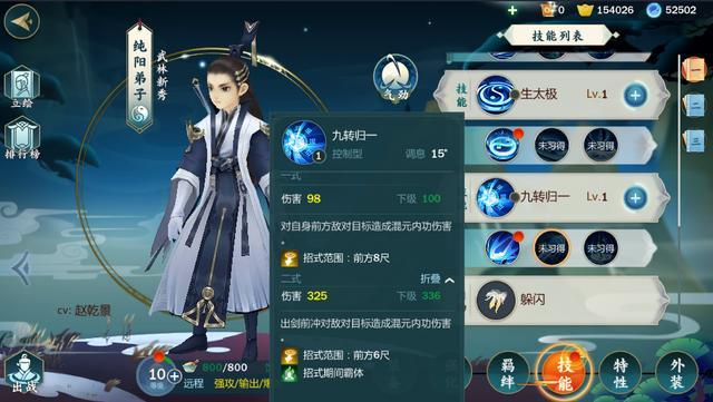 在特征方面,纯阳门生基本特征品格清高瘦骨如柴能够减少闪避技能的10%内劲损耗,稍微增添了一些生存力,然而依然非常差,能够增添1个洞察民气(人物会意提升10%,会效提升10%)用作提升pve伤害。