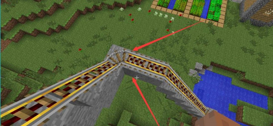 3、攻略过山车上层是界过铁轨和动力铁轨,下层是山车下红石火把。