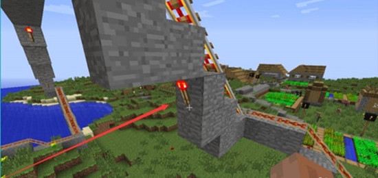 5、动力铁轨下面要放红石火把,这样才能提供动力来运行。