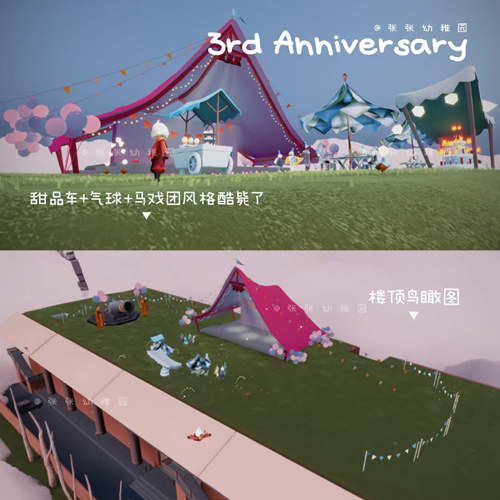 3、屋顶有许多场景,马戏团、甜品车、气球。