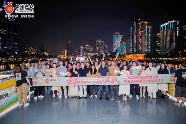 以珠江夜游为载体,高州打造的“移动的产业展厅”以多元形式推动高州荔枝“走出去”:一是产销精准对接:组织粤港澳大湾区头部采购商与高州企业面对面商谈,促成直供订单,缩短流通链条。活动现场设置“高州荔枝供港澳直通车”首发仪式,这不仅是高州荔枝发展的重要里程碑,更是深化区域合作、共促产业繁荣的崭新起点。二是沉浸式品牌展示及高州荔枝文化体验:在游船设置高州荔枝产品展区,陈列荔枝鲜果、深加工产品,现场更是增添唐宫夜宴、时尚湾区音乐表演等文化内容,立体呈现 “荔枝 + 文化” 魅力。三是多维度宣传曝光:邀请抖音网红达人开展现场直播、发起“高州荔枝·全‘荔’以赴·湾区绽放”话题,覆盖主流媒体,为高州荔枝引流造势,形成“高州荔枝”千万级话题曝光。