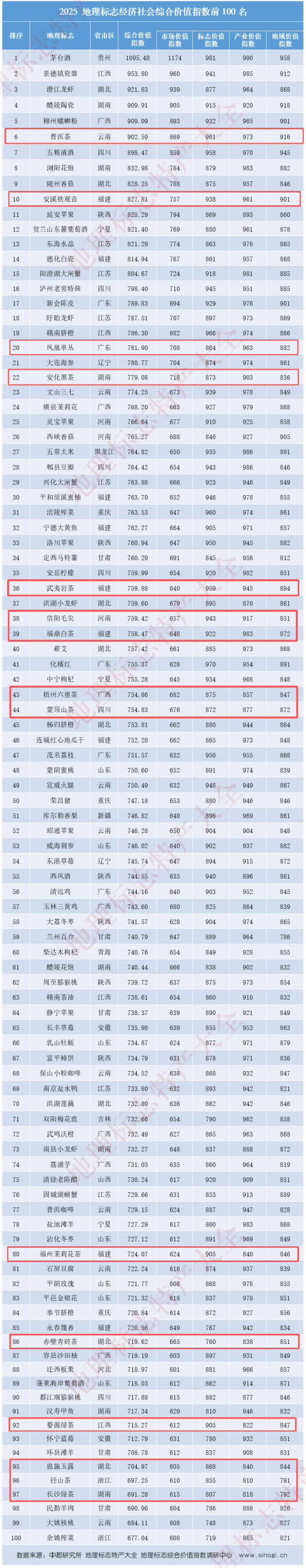 15个茶叶品类进入百强名单!《2025地理标志经济社会综合价值指数调研报告》发布
