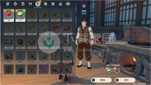 3、打开背包,提交绝云椒椒*1、莲蓬*1。