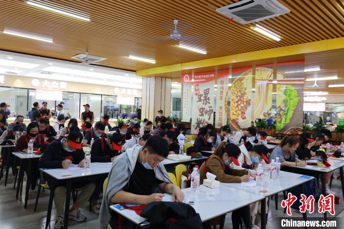 图为台青进行柳州螺蛳粉制作技艺理论考试。名台中新社记者 林馨 摄