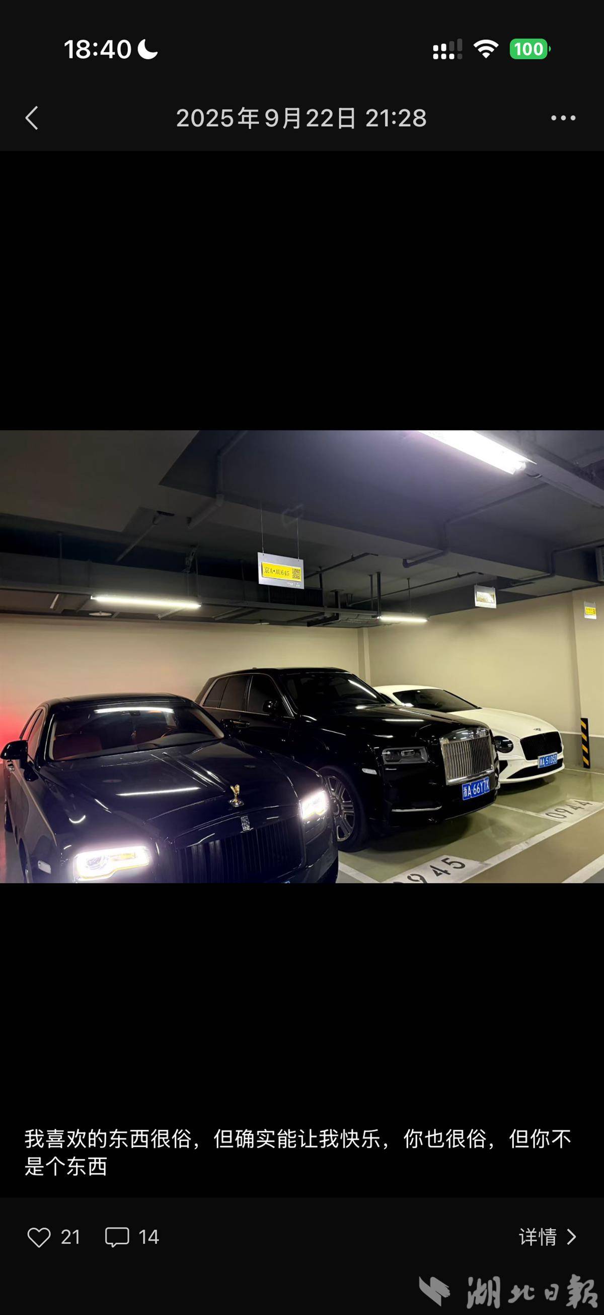 徐某展示自己提了一台宾利轿车。班房