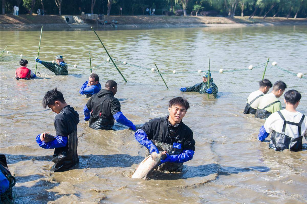 来自赞比亚的留学生告诉记者,他在家乡使用渔网捕鱼,在学校里则是用手捞鱼,“鱼非常滑,补起来也很困难,这是一次非常特别的体验!”