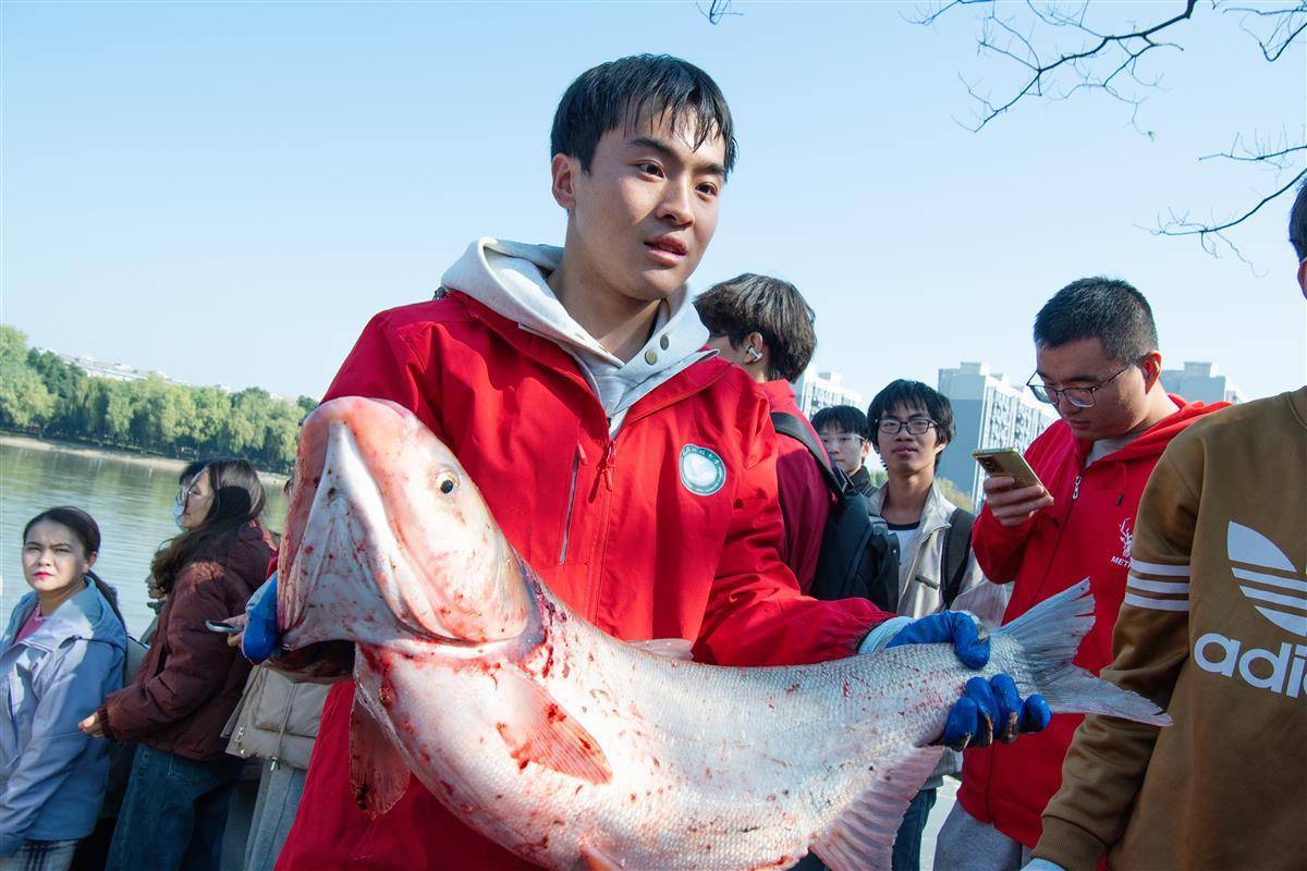 师生竞逐下,“鱼王”被该校化工学院2000级校友宋合兴拿下,重达9.2公斤。他高高举起这份沉甸甸的收获,骄傲地说:“今天代表25万校友回家,祝全校师生年年有余,万事大吉!”汽车与交通工程学院学生姚昌荣则凭借捕获的8.7公斤大鱼,在学生群体中拿下“捕鱼王”头名。