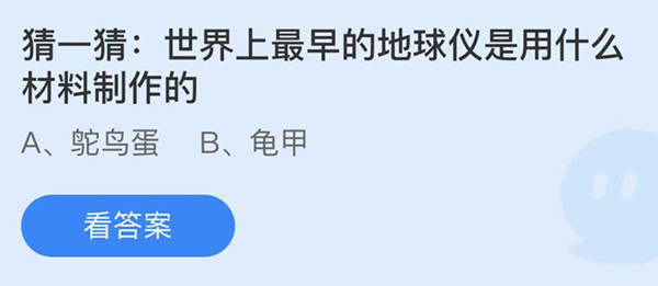 蚂蚁庄园10月14日的蚂蚁问题分别是:猜一猜:世界上最早的地球仪是用什么材料制作的?小鸡宝宝考考你:以下哪种动物天生会游泳?下面小编给大家带来问题的解答,还不清楚的庄园最新小伙伴一起看吧。