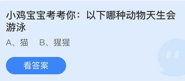 问题2-小鸡宝宝考考你:以下哪种动物天生会游泳?月日