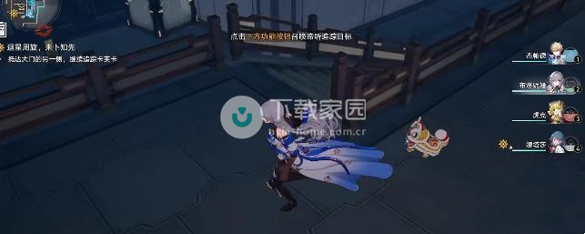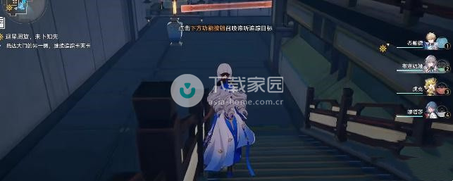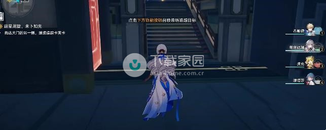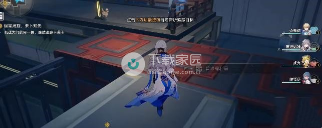 2、崩坏继续向左边方向走,星穹到达前面的铁道控制装置的位置,之后向右边移动,追踪移动完成就可以离开了;