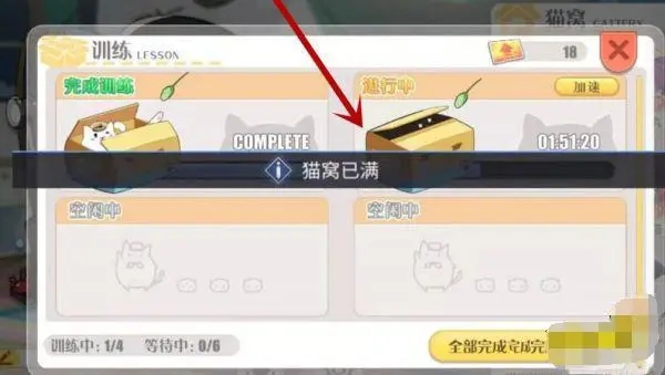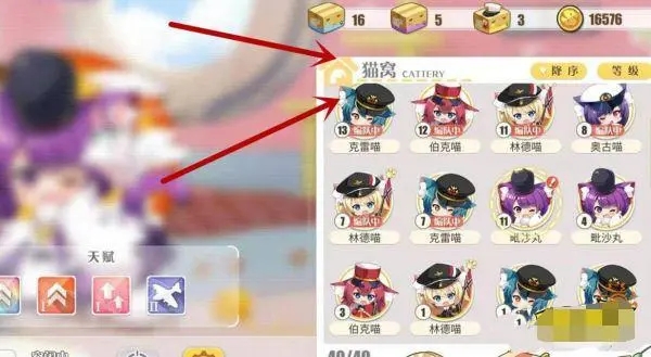3、航线第三步我们点击猫猫界面的猫窝满办陪玩按钮后就可以点击进入猫爪子界面,选择一些对于玩家来说不重要的碧蓝猫咪进行陪玩,这样我们就可以将满满当当的航线猫窝给清理出来了。