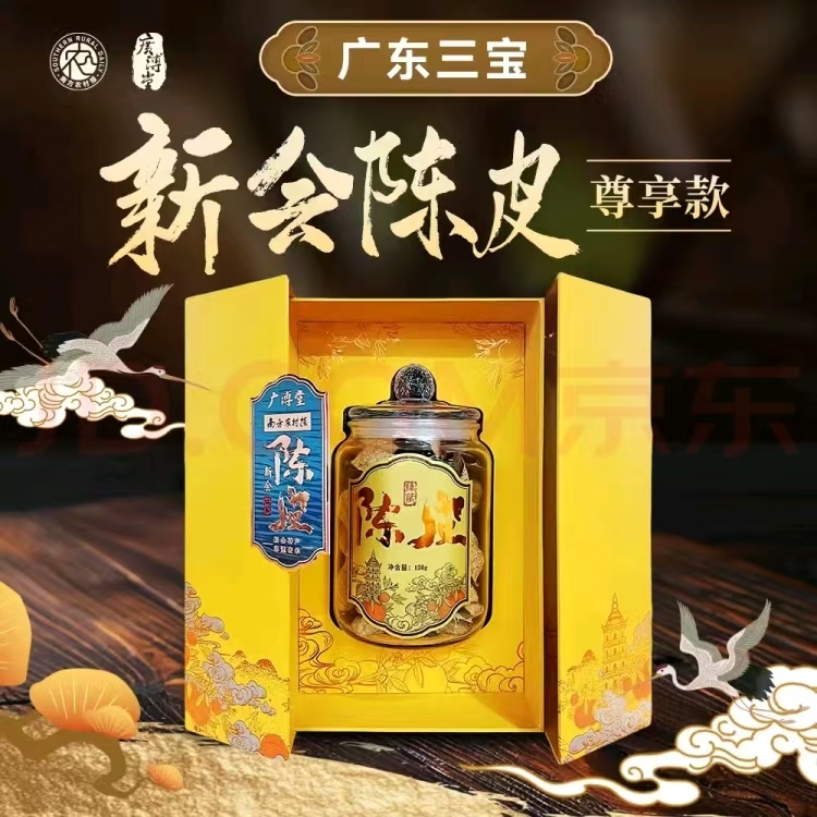 尊享款十年天马陈皮礼盒为明黄主调缀以烫金纹饰,浮雕工艺勾勒皇家礼制,每一处细节皆诉说着“以陈为贵”的东方哲学。以故宫红金尽显尊贵之仪。十年天马陈皮礼盒为独立密封玻璃罐,防潮锁鲜,自用珍藏两相宜,商务馈赠、孝亲赠礼,彰显不凡品味。??