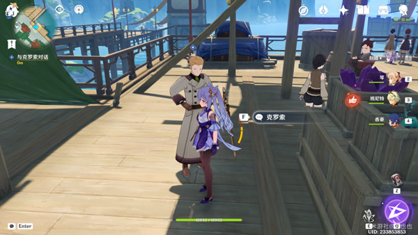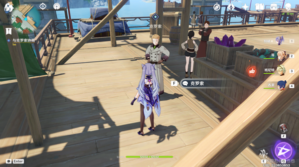 1、原神传送到璃月港,翠石前往码头,砌玉和克罗索对话。攻略