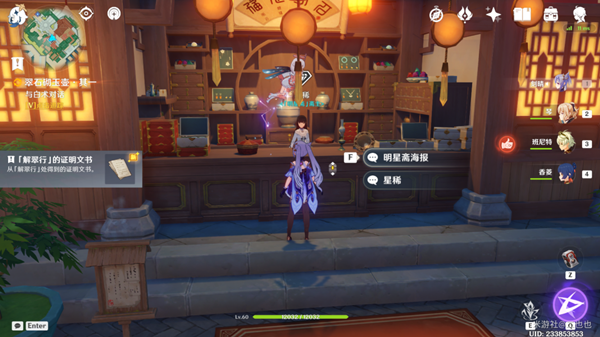 6、和明星斋的星稀对话,拿到解翠行证明文书。