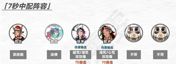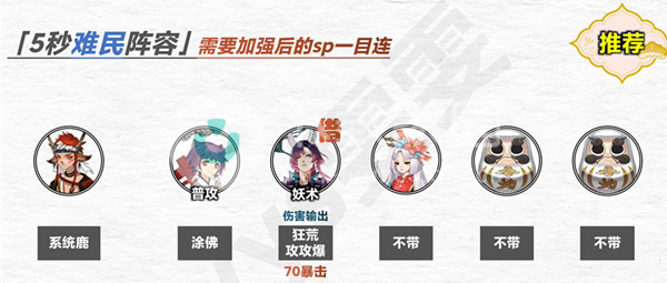 2、式神面板参考:破荒sp一目连249,面板不够可带二技能满的薰,或者狗粮换增伤式神。