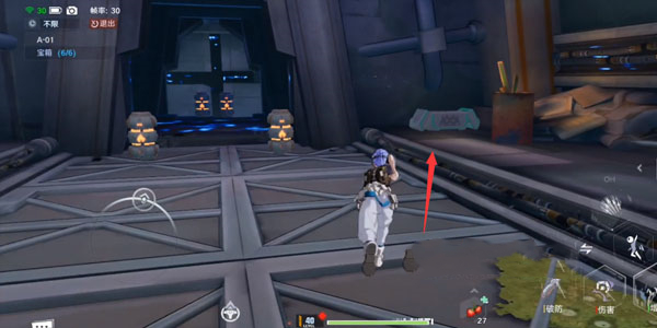 宝箱1:位于门口左侧墙壁上,置攻要用机械手臂爬上去拿到。幻塔