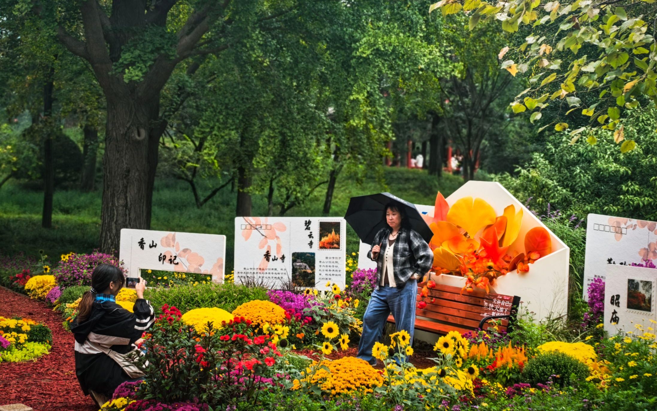 游客在香山公园拍照留念。北京市公园管理中心供图