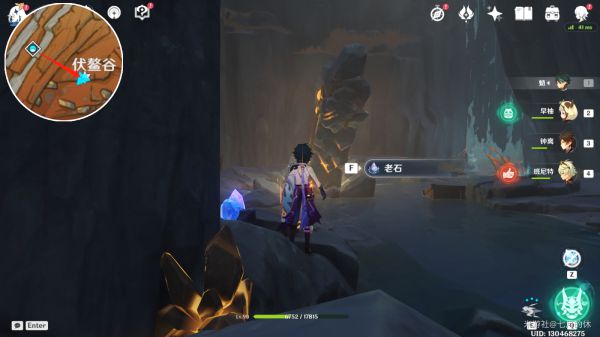 传送到琉璃峰上方传送点(即千岩军营地),往上爬,可以看到山崖上面有一块老石。