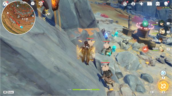 从4号出发,可以看到一群丘丘人在采矿,老石就在矿堆里。