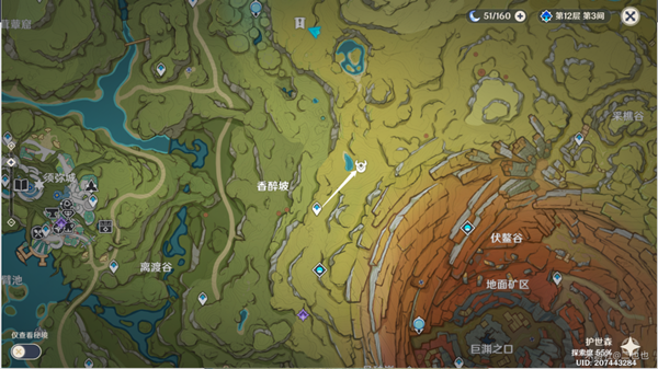 1、解密传送到香醉坡,攻略朝着东北方向飞过去。原神