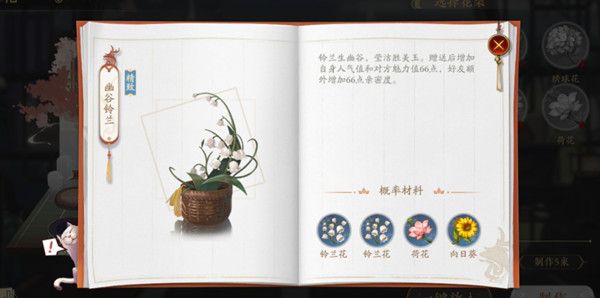 2、配方幽谷铃兰:铃兰花+铃兰花+荷花+向日葵