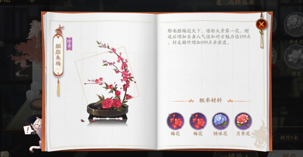 4、山心胭脂朱梅:梅花+梅花+绣球花+月季花