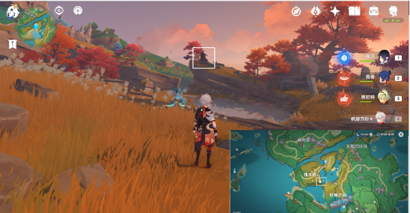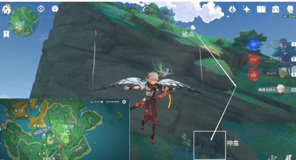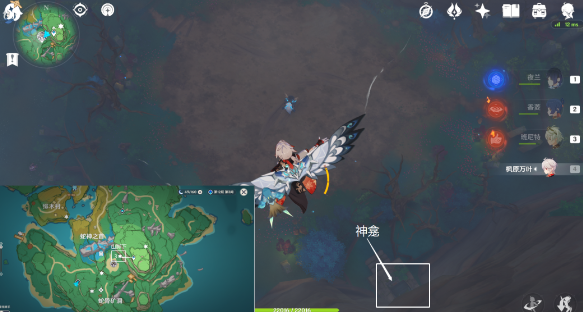 3、第三个神龛依然是再八酿岛,我们来到地图西方然后向下飞,如图标记的位置就是第三个神龛在的位置,我们上前调查。