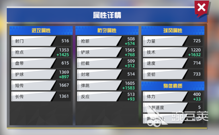 另外除了进攻以及防御属性之外,球风属性也是非常好理解的,其中的力量技术、速度、坚韧基本都是带来的全面效果加成,其中有部分球员他带来球风加成的时候,整体的加成影响会更强势一些,而最后就是身体属性的效果,这类属性效果大家也可以看作是球员自身的素质在其中分为了体力、恢复速度,还有跑动能力上面体力数值其实是跟球员的上限有关,每个球员他拥有多少的上限数值,这里使用技能的话就根据跑动的速度来进行消耗体力越多的时候,使用技能速度会越快,而且在快速跑动的时候消耗的体力也会更多一些。