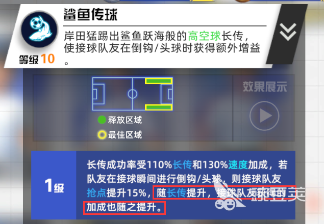 如果是短传的话,在其中带来的则是短传带来的传到率,另外长传的话就是长传的传到率,这两个还是比较容易理解的,除了以上的输出能力加成之外,还有绝招的球员,他们绝招的效果也会受到上面属性的影响,比如说岸田猛的鲨鱼传球技能,其中长传的数值不仅会影响长传动作,还会让队友在倒钩投球的时候获得一些额外的增益效果,那么在防守时期里面,大家注重的就是抢断,铲球,拦截,风度,弹跳、反应这几个属性,其中的抢断都是非常明显的,铲球跟抢断很容易理解。