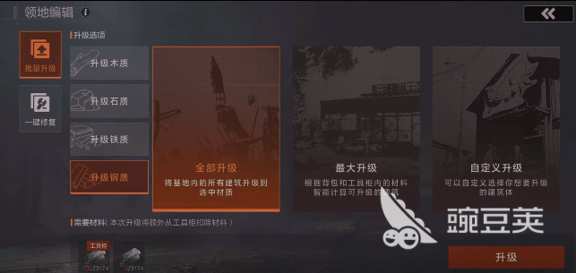 在游戏初期需要优先的收集建筑材料,如此就能有效满足领地柜的建筑维护,还有升级。可以根据游戏的进程,还有自身的需求去合理的升级规划建筑。在资源充足的情况下,可以选择批量的提升建筑等级,可以有效强化防御攻势,节省逐个升级的时间。