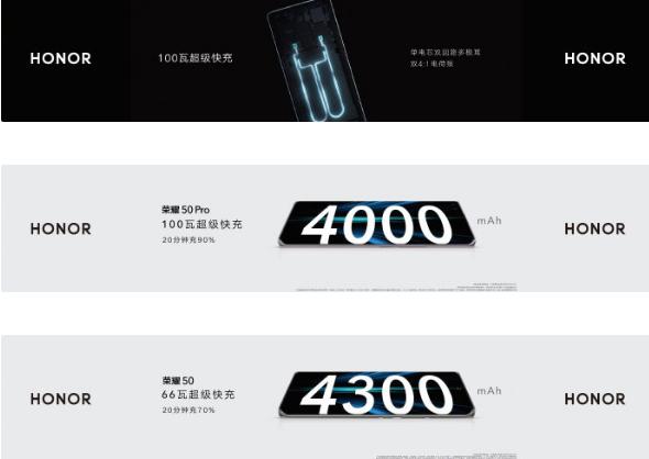 荣耀50系列在快充技术上又带来了全新升级,采用了单电芯双回路多极耳卷绕工艺,50Pro搭载 100 瓦超级快充,20 分钟可充至 90% 电量。而荣耀 50 搭载 66 瓦超级快充,20 分钟可充 70% 电量。