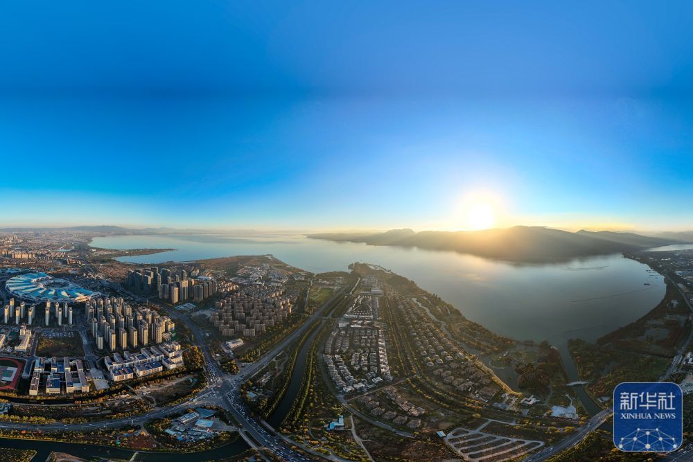 ↑ 12月10日拍摄的滇池一景(无人机全景照片)。