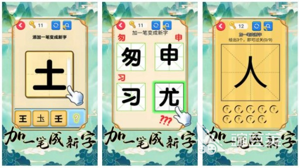 这款游戏为大家展示了,传统汉字文化的博大精深变化,其中有丰富的关卡挑战供各位竞技。大家熟悉的一个汉字,通过增添一笔,便会变化为一个全新的汉字,这个游戏过程不仅乐趣无穷,同时还能令大家感受中文汉字的无限精彩与魅力?!?#21152;一笔成新字》的笔画增添过程充满了创意,大家可以尽情展开汉字的观察和脑洞思索。