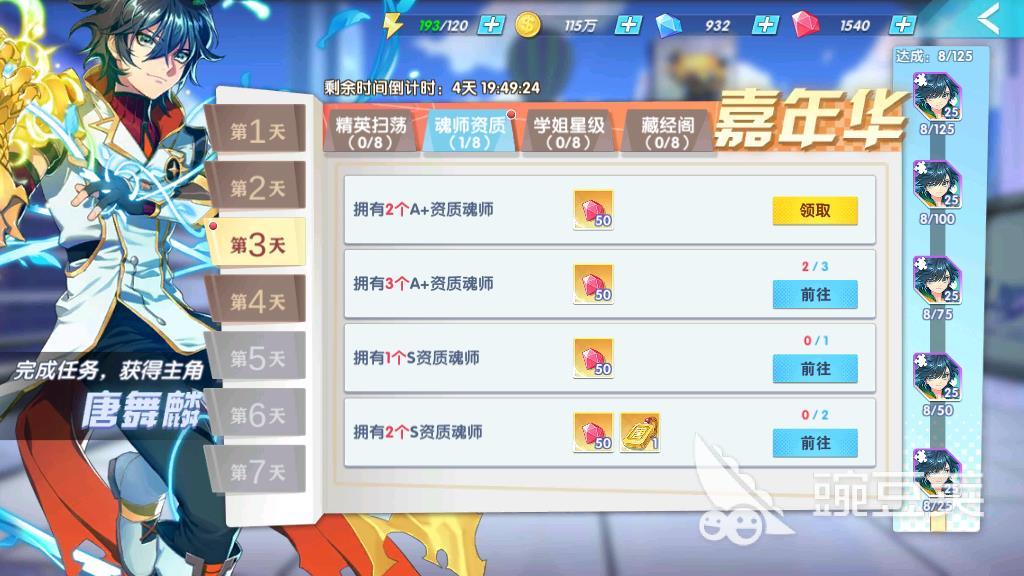 第三个方式玩家可以通过嘉年华活动获得,在目前的游戏中正在进行的活动。这个活动总共有七天,玩家只需要按照活动中的小任务完成即可获得奖励,那么在最后一天的任务中,玩家只要完成了难度考验即可获得魂兽血的奖励。