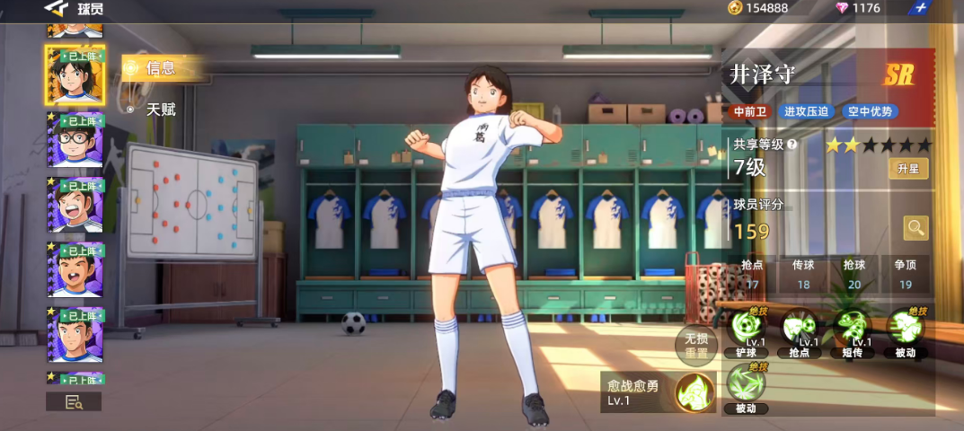 连环爆发属于井泽守技能当中比较出色的一个被动技能,这个被动会让井泽守的铲球属性增加2.1%的数值之后,每发动一次铲球动作的时候,都会额外再增加1%铲球属性持续时间同样也是达到最长的50秒,最后的一个技能就是愈战愈勇,只要井泽守在场这个技能就会给我方球队带来加成,此时如果我方任意球员在前场成功夺回球权时,并泽守有50%几率增加6.3%的暴发属性,且这个爆发属性的加成效果会持续本场比赛一直生效,最多叠加3层之后会让任意球员在前场抢断或者是铲球爆发之后,还可以可以使井泽守获得【愈勇】的状态,这个状态一层就可以带来15秒的生效时间,最多到3层的叠加机制,也会让并泽守在前场削弱对手的控制值时带来足够的提升能力。