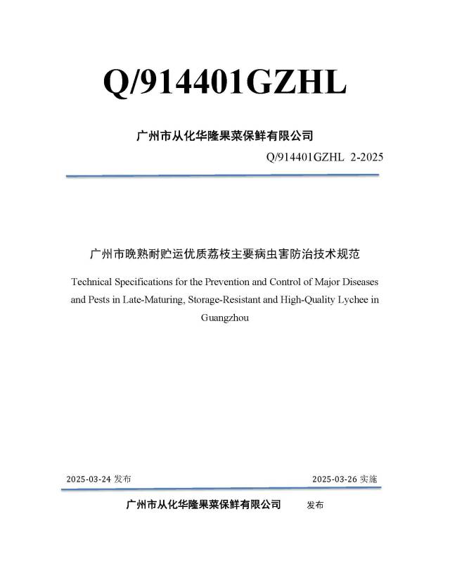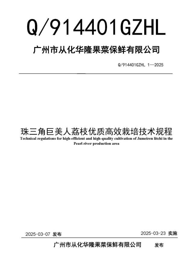 近日,广州市从化华隆果菜保鲜有限公司、两项荔枝华南农业大学联合发布了《广州市晚熟耐贮运优质荔枝主要病虫害防治技术规范》和《珠三角巨美人荔枝优质高效栽培技术规程》。技术该两项技术规范的规范管理发布,将为荔枝种植户提供科学、科学系统的种植技术指导,推动荔枝产业向标准化、加码规范化、从化绿色化方向发展。发布