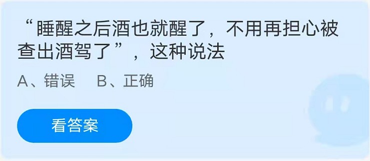 解析:显然是错误的,醉酒之后隔天依然有酒味。答案