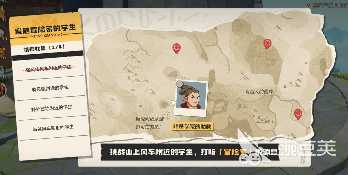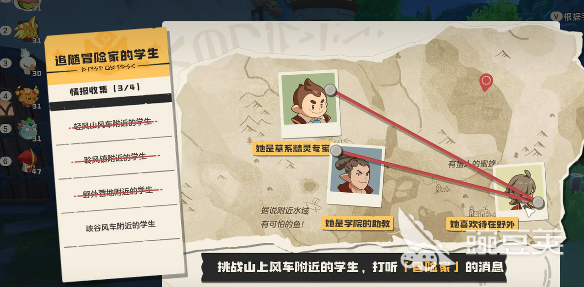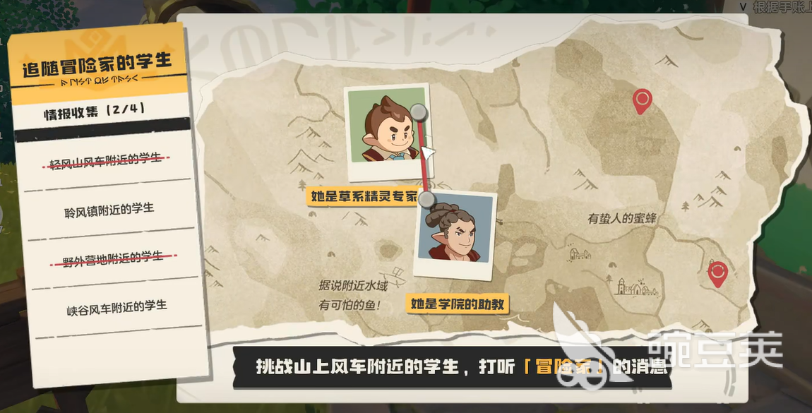 最后一个冒险者是最难找的,因为他不在风车底下,位置跟前面三个都不一样。需要传送到风息山口的魔力之源,传送过去之后先别乱走。仔细找一找,会看到一个倒掉的风车,不是立着的那种,是倒在地上的。找到这个倒掉的风车之后,往上面看,上方有个平台。爬到那个平台上面,就能看到一个叫兰迪的冒险家在那里。跟他对话然后打一架,打赢了就能拿到第四个消息。四个消息都收集完了,任务就算是完成了,可以回去交任务了。